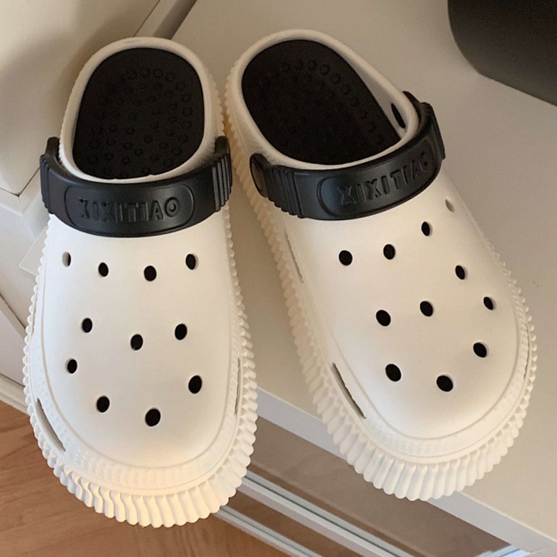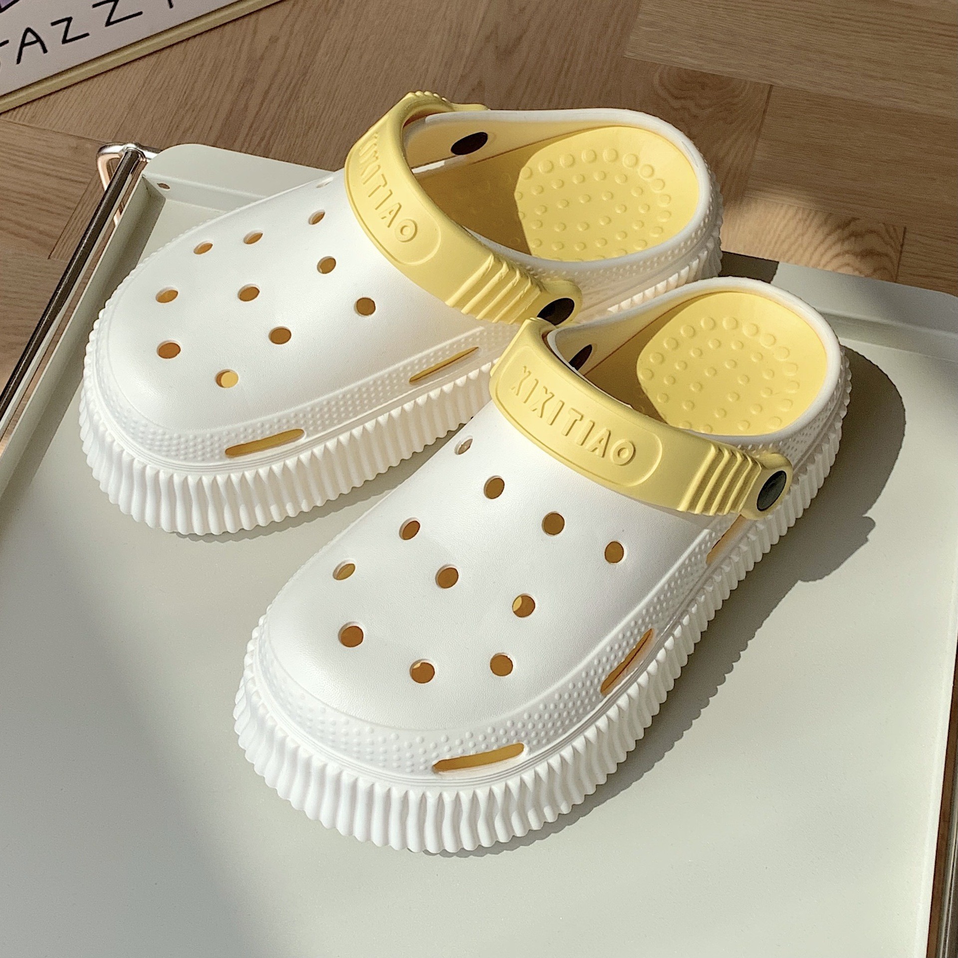 • 时尚增高厚底洞洞鞋女夏季软底踩屎感时尚外穿沙滩凉拖鞋