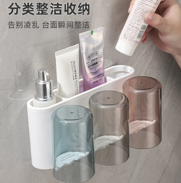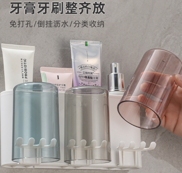 牙刷置物架免打孔漱口杯刷牙杯卫生间壁挂式浴室多功能牙刷架