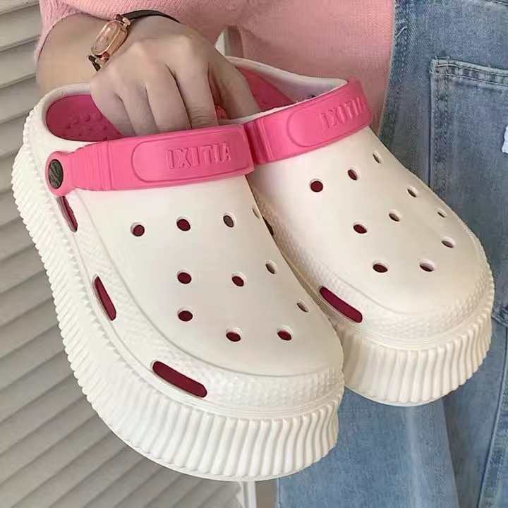 • 时尚增高厚底洞洞鞋女夏季软底踩屎感时尚外穿沙滩凉拖鞋